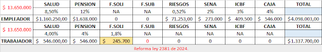 Ojo: - Se debe tener en cuenta que el empleador solo aporta el 8,5% del ingreso - salario, sobre aquellos trabajadores que devengan 10 o mas smmlv.